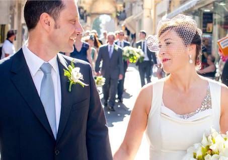 Lynn gets married to Eoin in sunny Albufeira, She looks stunning in a Pronovias lace fishtale gown and matching veil.. |